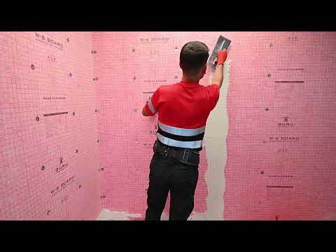 Fast and convenient, the Guru W-S Board reduces drastically the building time of a shower by having a Water-Stop layer factory-bonded to a XPS foam. It is a unique development duo to the overlapping of the Water-Stop – it makes banding no needed anymore. XPS core with a factory bonded layer bigger Water-Stop (plastic film (EVA C) with non-woven synthetic fibers) layer which creates a flange. Installation: To be screwed in wood studs or adhered to substrate with thin set."